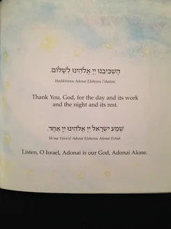 And that is what makes me happiest about the bedtime Shema. Because it is the same for me. It is relaxing. The Shema is the perfect segue from waking to slumber, whether I sing it like a diva or yawn my way through.